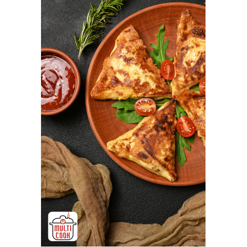 Pork Benderiki are thin crepes folded and stuffed with juicy pork filling, then pan-fried until golden and crisp on the outside and tender inside. The crepe batter is made from premium wheat flour, cow milk, chicken eggs, butter, water, white granulated sugar and salt, giving a soft, elastic wrapper that browns beautifully in the pan.