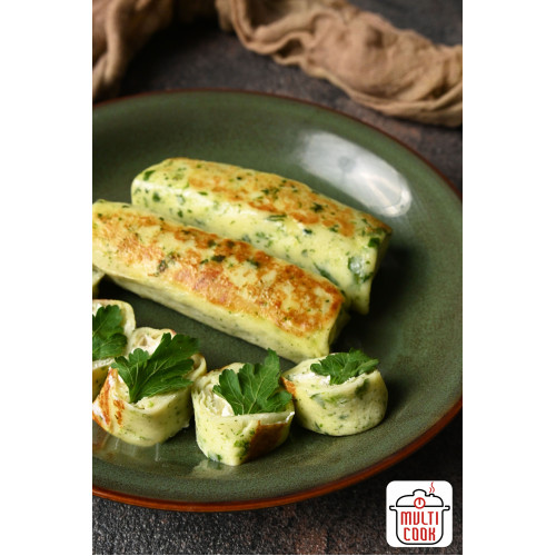 Inside, there is a smooth, rich filling of spinach and cream cheese, giving a mild, creamy taste with a fresh green note. This combination makes the crepes perfect for those who love light but satisfying savory dishes – ideal for breakfast, brunch, lunch or a quick dinner.