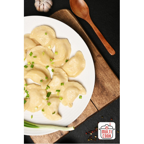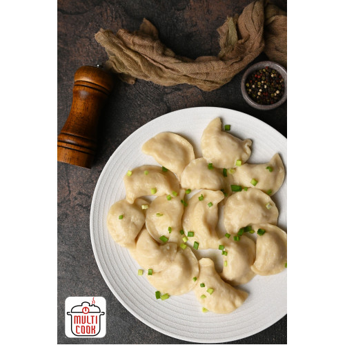 The dough from premium wheat flour and water stays tender and elastic after boiling, while the filling remains smooth and satisfying. Serve potato pierogy as a main course or hearty side dish – they are especially delicious with butter, sour cream, fried onions or fresh herbs.