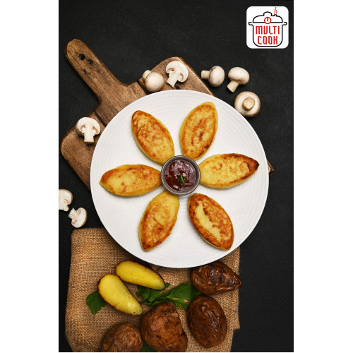 Inside, the filling combines fried mushrooms and fried bulb onion, lightly seasoned with salt and ground black pepper and cooked in refined sunflower oil. The result is a pronounced mushroom flavour inside a gentle potato shell – a comforting, home-style dish that’s also meat-free and vegetarian-friendly.
