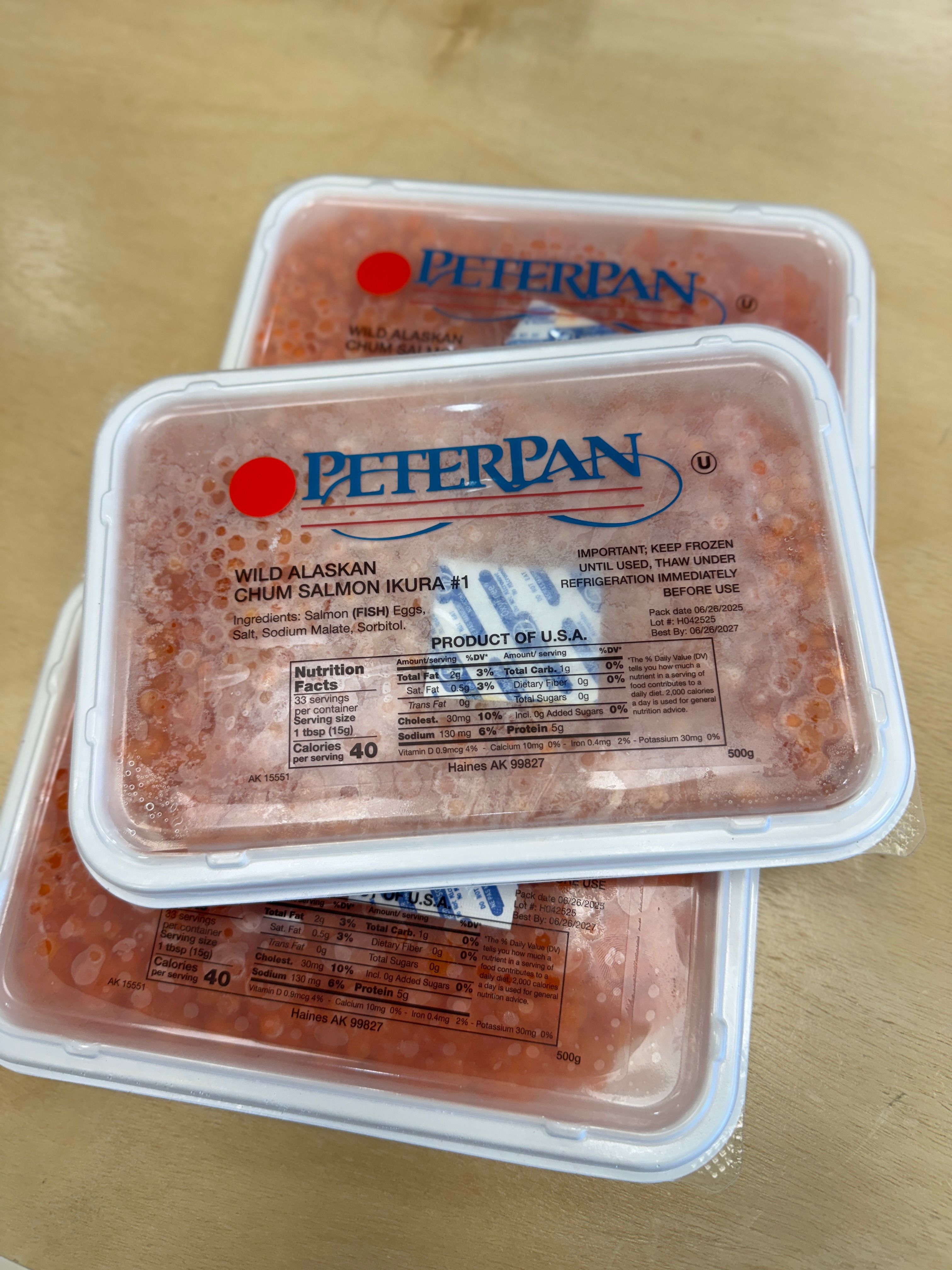 Ingredients: Salmon eggs, salt, Sodium Malate, Sorbitol.