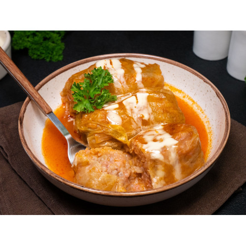 These home-style cabbage rolls are generously stuffed with a juicy mix of premium veal and beef, tender boiled rice and sautéed vegetables, all wrapped in soft white cabbage leaves. It’s a hearty, comforting frozen ready meal that brings classic homemade flavor to your table with almost no effort.